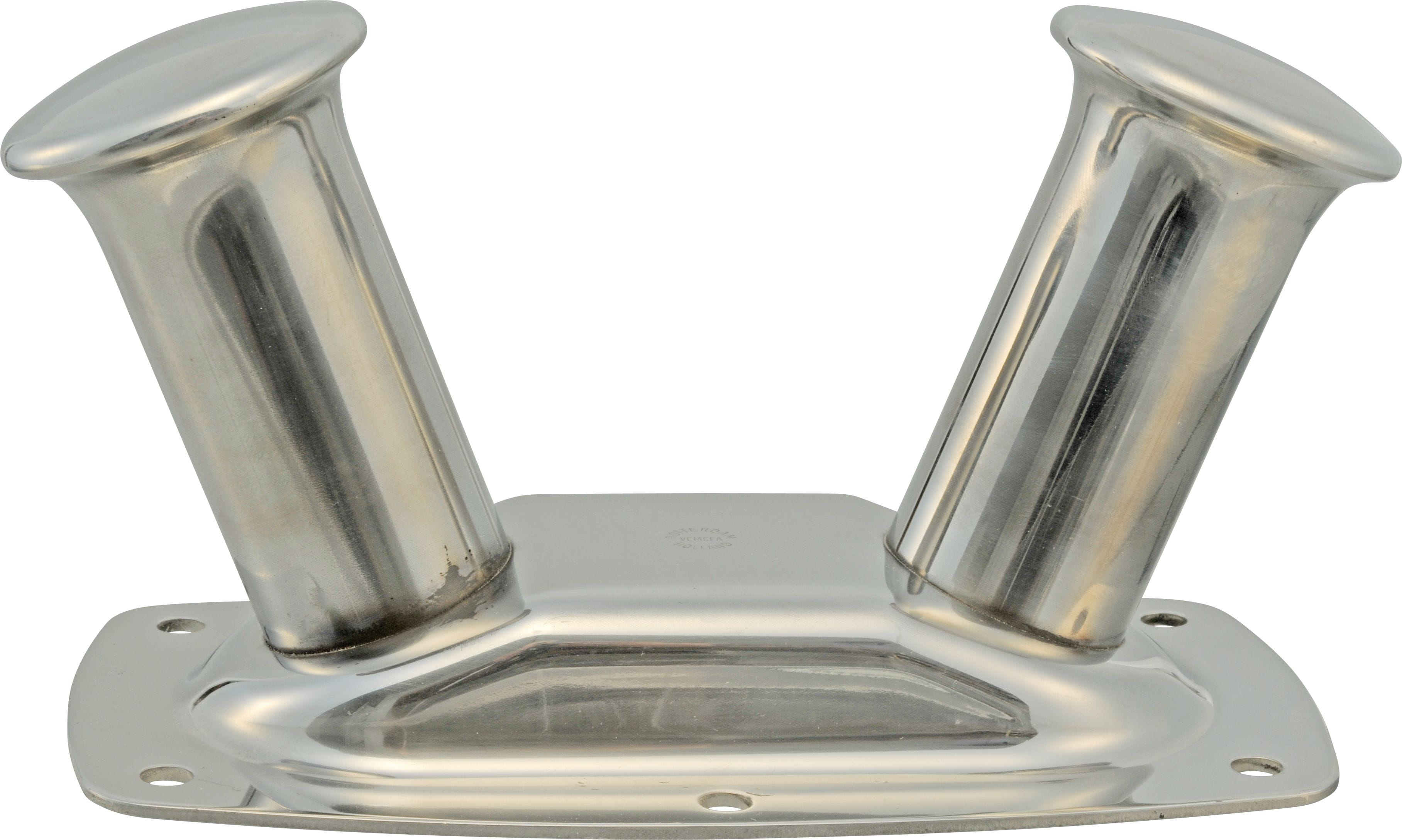 Polished stainless steel (AISI 304) bollard with drilled base plate.