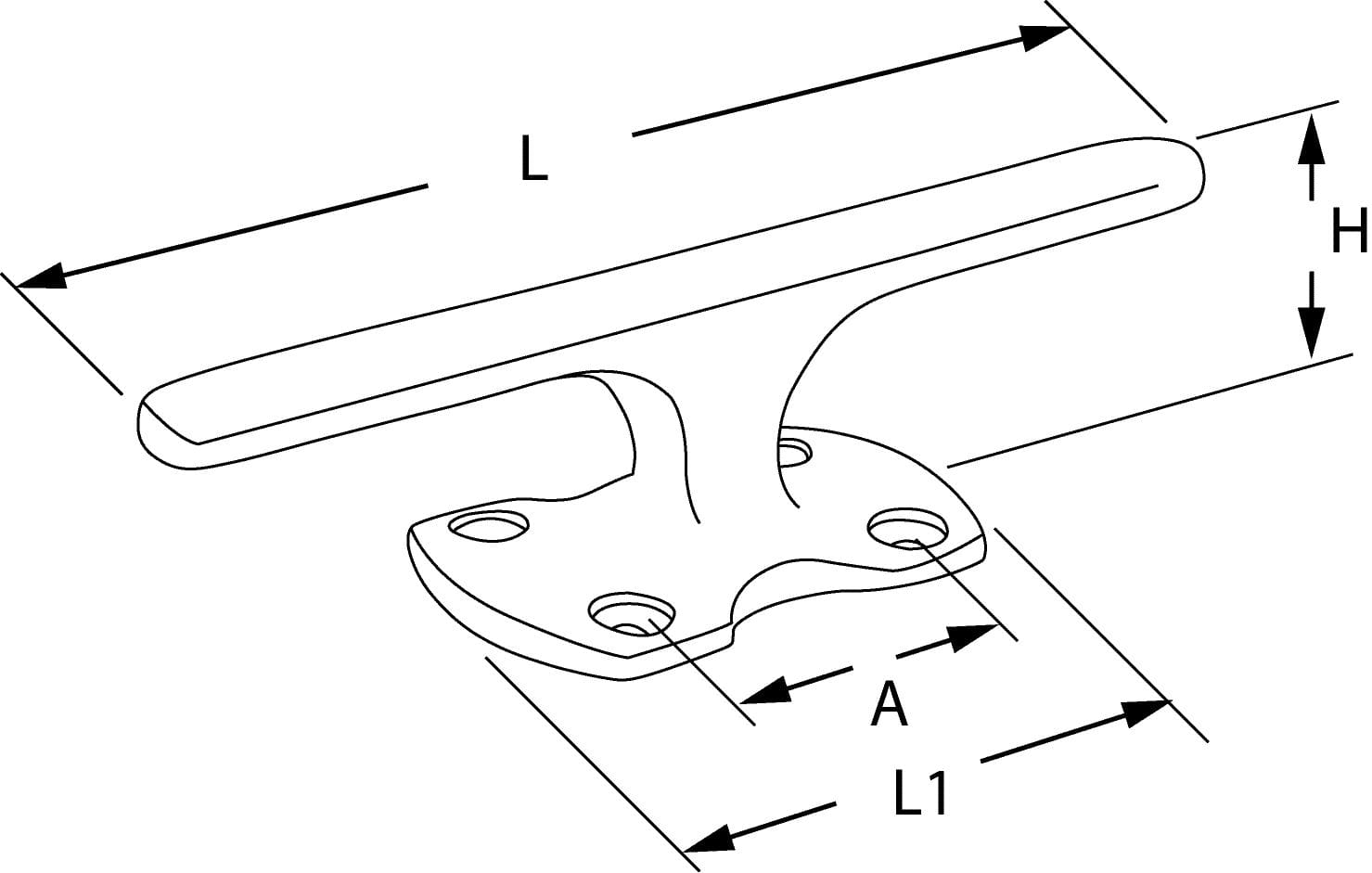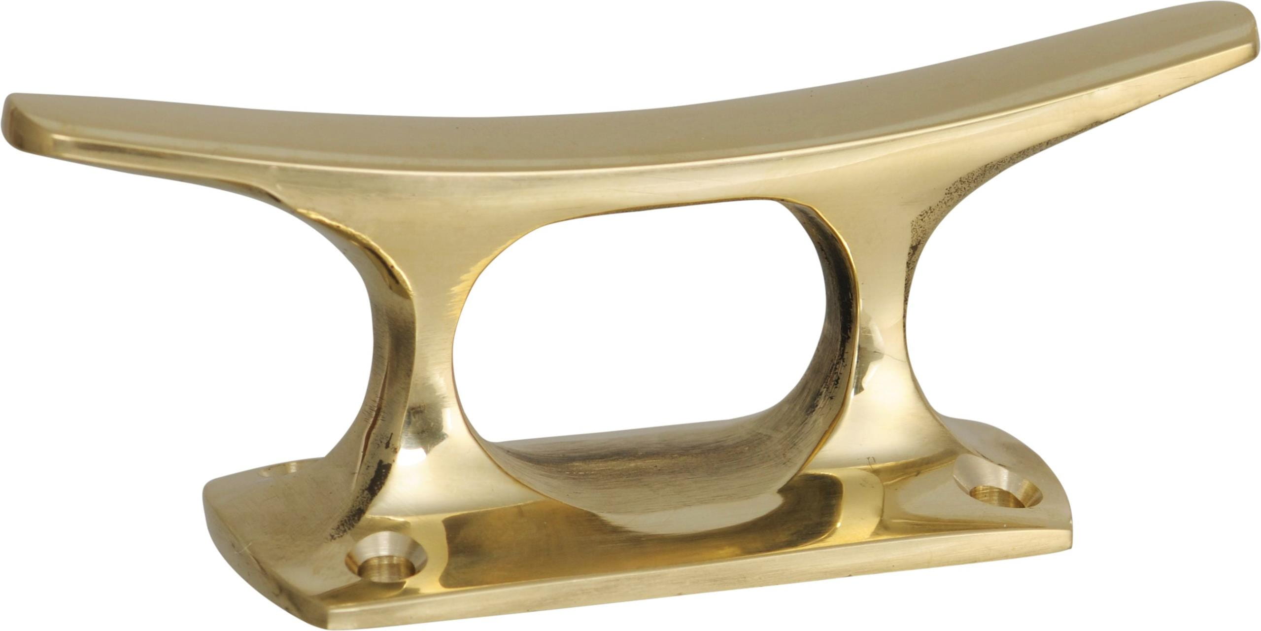 The smaller cleat has four holes, the two larger ones have six holes. Thanks to the heavy design and the base plate, this beautifully shaped cleat can withstand high loads. Well suited as a centre cleat on the foredeck.