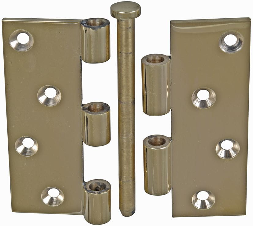 Strong hinge with removable pin. Made from brass, surface polished brass or chrome plated.