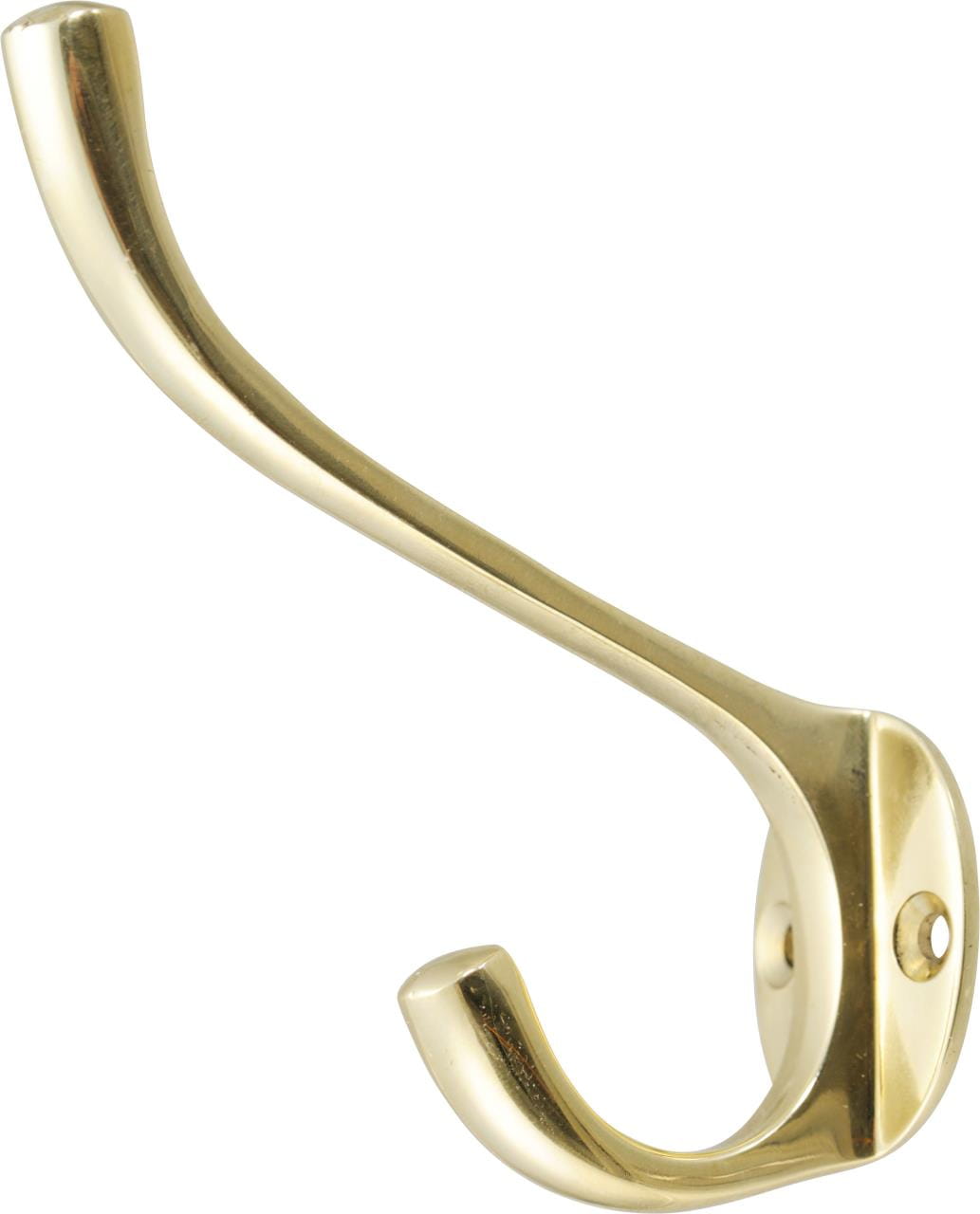 Elegantly shaped coat hook made of brass, available in polished brass, chrome-plated brass and matt chrome-plated brass.