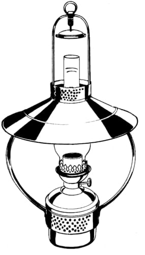 Paraffin (kerosene): 14"' Glass chimney KOSMOS, wick and burner, Tank contents 0.65 l for approx. 50 hours of burning time.