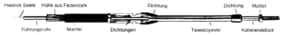 All end parts made of stainless steel, Teflon-coated core, steel-reinforced plastic sheathing, permanently lubricated, effective end seals.