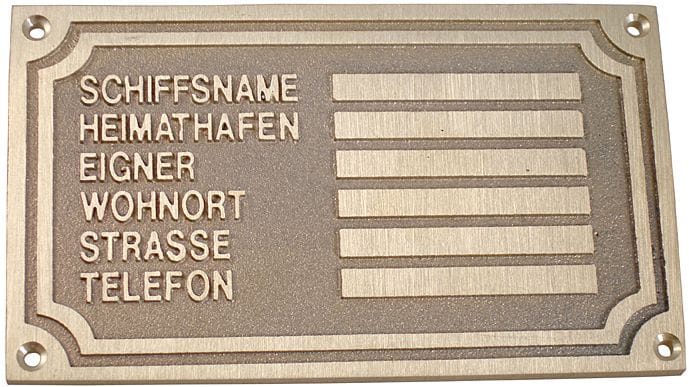 The owner's plate can also be supplied complete with engraving. For better readability, the engraving is blackened. Engraving is only possible together with the order of an owner's plate (see matching articles). The delivery time is approx. 3 weeks.