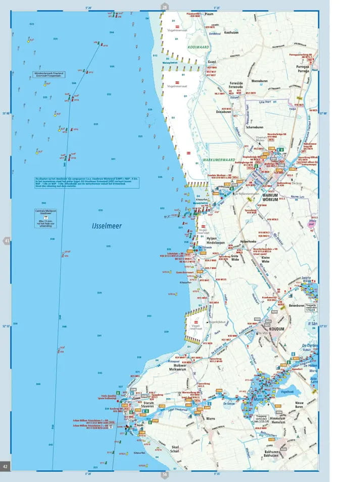The ANWB Water Atlas Nederland midden replaces the ANWB Water Maps 5 Kop van Overijssel, 6 Twente Canals, 7 Gelderse IJssel Zuid, 8 Great Rivers, 9 Randmeren and Vecht and 11 Hollandse Plassen. It also overlaps with parts of ANWB Waterkaart 4 Drenthe, 5 Kop van Overijssel, 10 North Holland, 12 Hollandse Delta, 18 IJsselmeer and 19 Dutch Coast. Waterkaart Amsterdam and Waterkaart 21 Vinkeveense en Loosdrechtse Plassen will also be replaced. It covers the waterways in Utrecht, Flevoland, Randmeren and Markermeer as well as parts of Drenthe, Overijssel, Gelderland, North and South Holland, including the coastal waters.