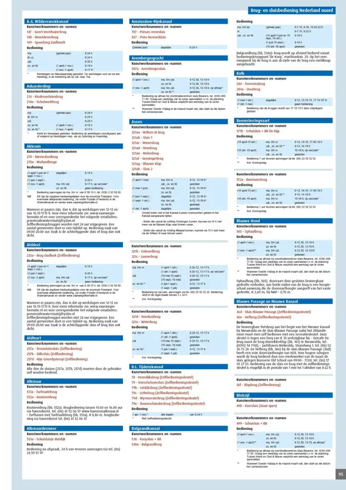 - Operating times and passage dimensions of bridges, locks and tunnels