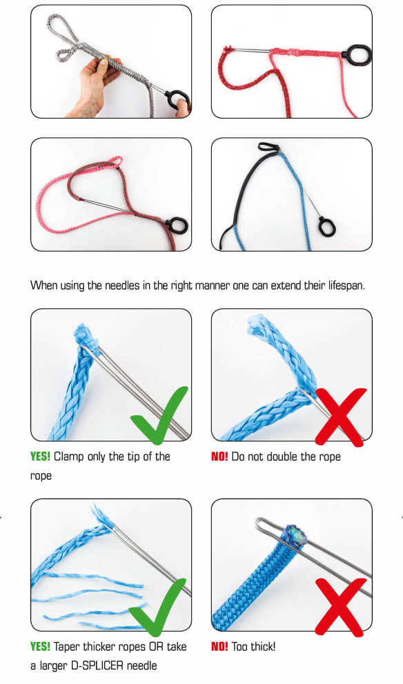 The D-SPLICER is perfectly suited for modern high tech rope, but is also very well usable as through pull in traditional rigging work.