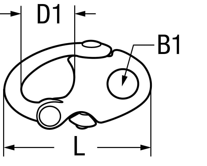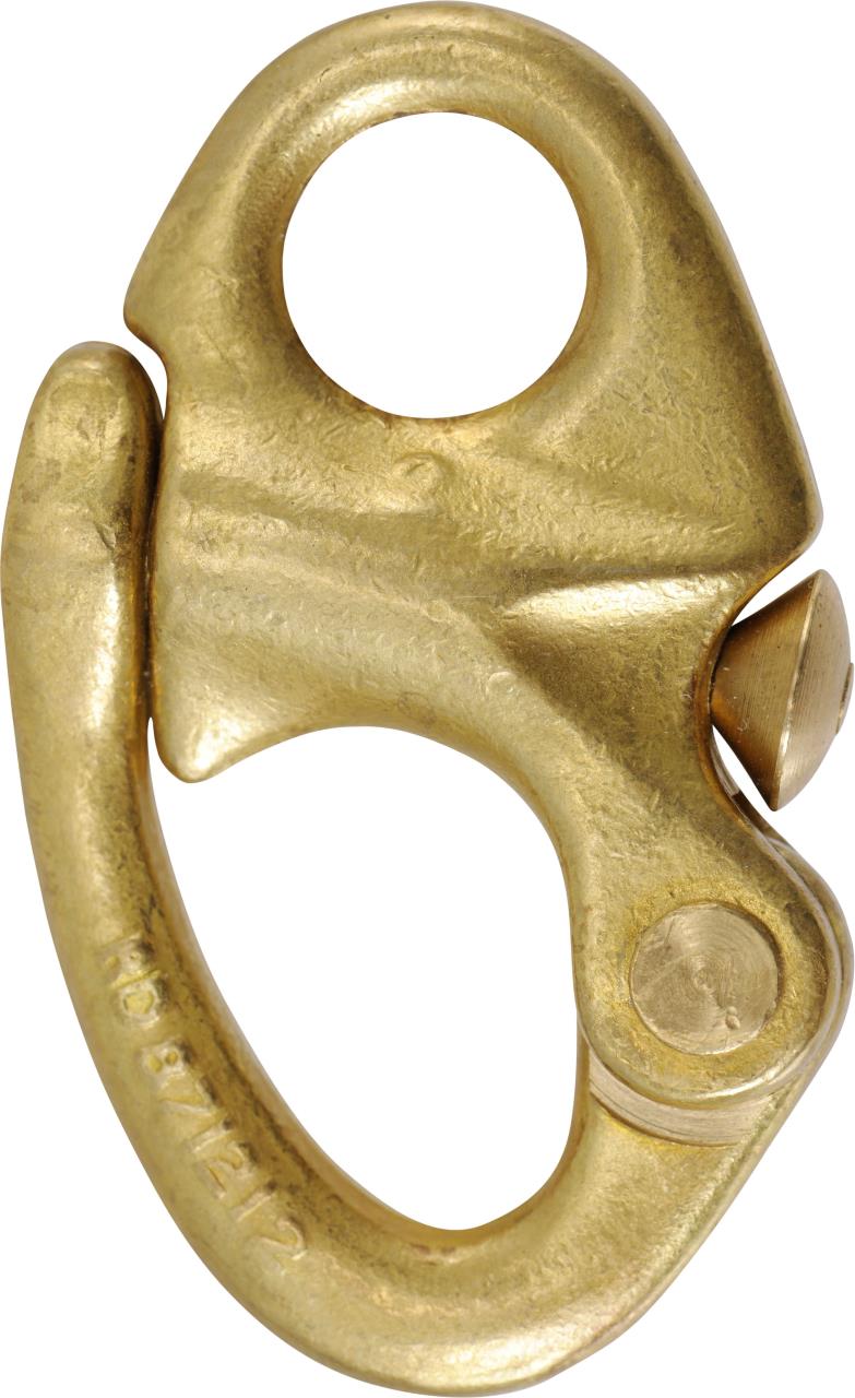 Snap shackle for halyards and sheets with fixed eye, made of cast manganese bronze.