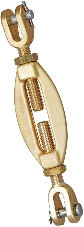 Small turnbuckle with high breaking strength, made from manganese bronze.