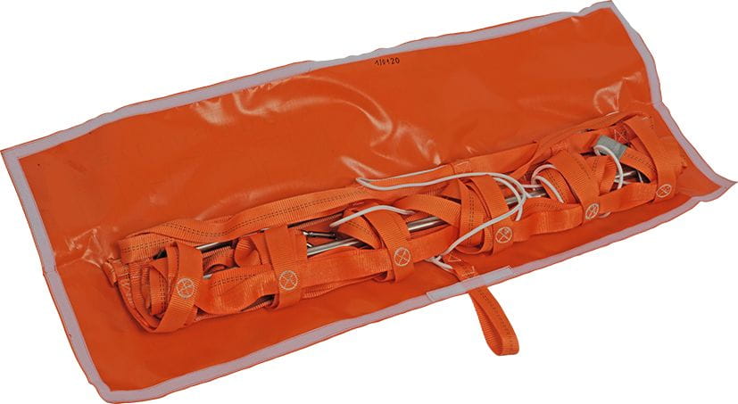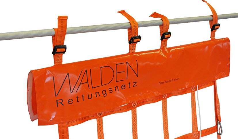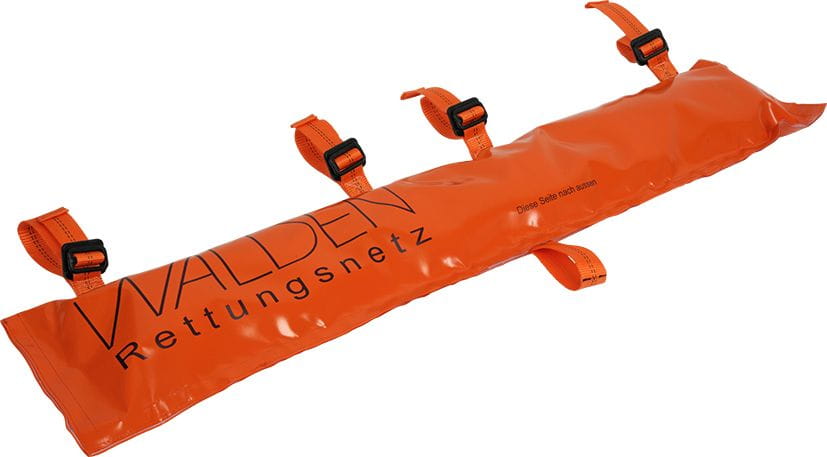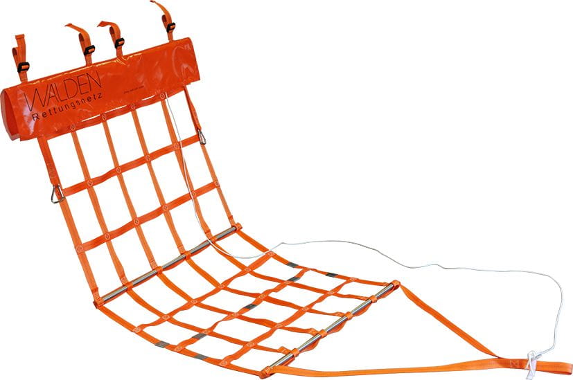 The rescue net is manufactured in Germany and consists of a high-strength webbing reinforced with stainless steel and aluminum tubes in a robust standby case.
