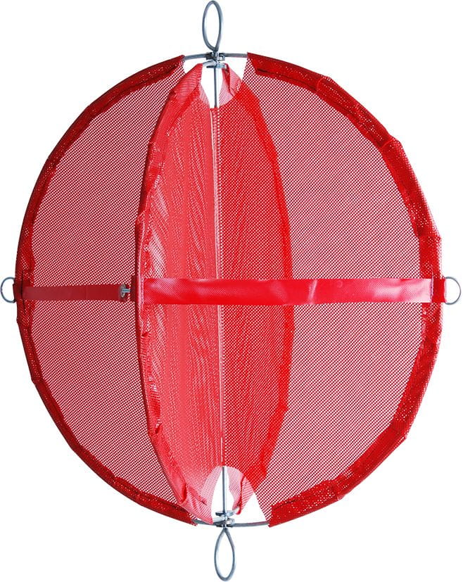 The 6 mm thick, galvanised steel rings are covered with heavy, stitched PVC mesh fabric that offers little wind resistance.